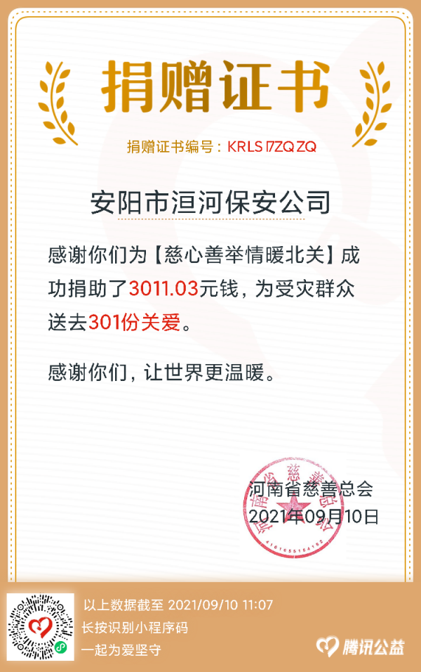 9月7日-9月9日為騰訊公益發(fā)起的“9·9公益日”全國性互聯(lián)網(wǎng)募捐活動,為積極踐行社會主義核心價(jià)值觀,弘揚(yáng)雷鋒精神,做新時代文明實(shí)踐的踐行者,公司號召全體干部職工、黨員伸出援助之手,積極參與此次募捐活動。