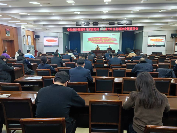 12月14日上午,安陽經(jīng)開集團(tuán)召開學(xué)習(xí)貫徹黨的十九屆六中全會精神專題宣講會,深入學(xué)習(xí)貫徹習(xí)近平總書記在黨的十九屆六中全會上的重要講話精神和《中共中央關(guān)于黨的百年奮斗重大成就和歷史經(jīng)驗(yàn)的決議》,特邀請中共安陽市委黨史學(xué)習(xí)教育宣講團(tuán)成員、安陽學(xué)院黨委委員、宣傳部部長姚林茹進(jìn)行授課,會議由經(jīng)開集團(tuán)黨委委員、副總經(jīng)理劉志霞主持。洹河保安公司黨委副書記張錫軍帶隊,組織公司15名黨員干部參加學(xué)習(xí)。