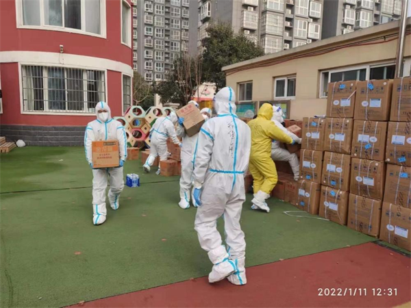 這次疫情發(fā)生之初,和園一期屬于封控區(qū),1月11日,為保障封控小區(qū)群眾的正常生活,特保大隊(duì)15名隊(duì)員在銀杏大街派出所所長薛玉良帶領(lǐng)下?lián)?dāng)突擊隊(duì),將千余套生活物資挨家挨戶送到和園一期小區(qū)居民家中。