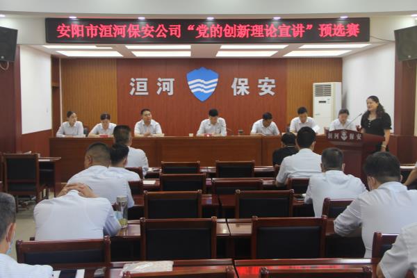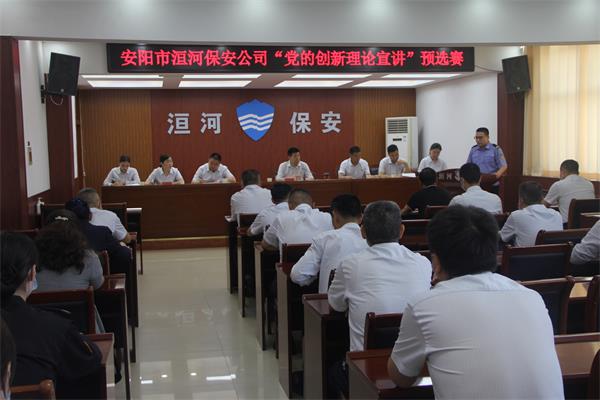 為深入學(xué)習(xí)貫徹習(xí)近平新時代中國特色社會主義思想和黨的十九大及歷次全會精神,推動黨的創(chuàng)新理論入腦入心,團(tuán)結(jié)引領(lǐng)廣大職工堅定跟黨走、建功新時代,激勵全體洹河保安人以更加昂揚的精神狀態(tài)迎接黨的二十大勝利召開,2022年5月19日下午,公司黨委舉辦“黨的創(chuàng)新理論宣講”預(yù)選賽,黨委書記、董事長、總經(jīng)理王高峰,黨委委員、副總經(jīng)理魏東到會觀摩,比賽由黨委副書記張錫軍主持。