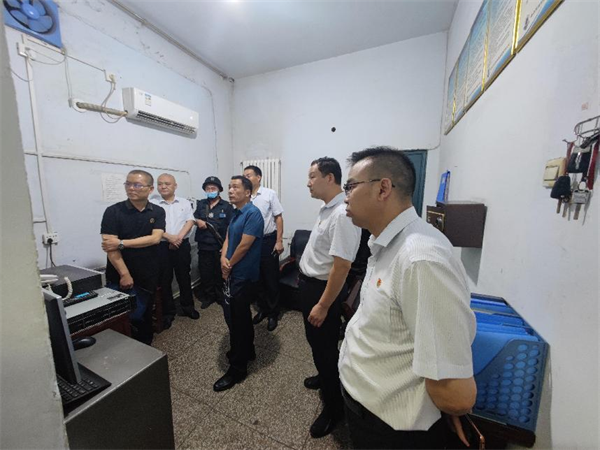 根據(jù)保安監(jiān)管工作夏季治安打擊整治“百日行動(dòng)”專項(xiàng)督導(dǎo)檢查工作方案要求,8月18日下午,由三門峽市公安局峽東分局督察大隊(duì)長(zhǎng)賈獻(xiàn)軍、原陽(yáng)縣公安局治安大隊(duì)長(zhǎng)李偉、義馬市公安局治安大隊(duì)教導(dǎo)員楊文峰、河南同盟保安服務(wù)有限公司副總經(jīng)理劉紅組成的全省保安監(jiān)管工作專項(xiàng)督導(dǎo)檢查組在安陽(yáng)市治安支隊(duì)保安監(jiān)管大隊(duì)隊(duì)長(zhǎng)齊超杰的陪同下,蒞臨公司檢查指導(dǎo)。公司黨委書記、董事長(zhǎng)王高峰,總經(jīng)理魏東,副總經(jīng)理孫國(guó)濤、李樞林和守押分公司經(jīng)理張合印等陪同檢查。