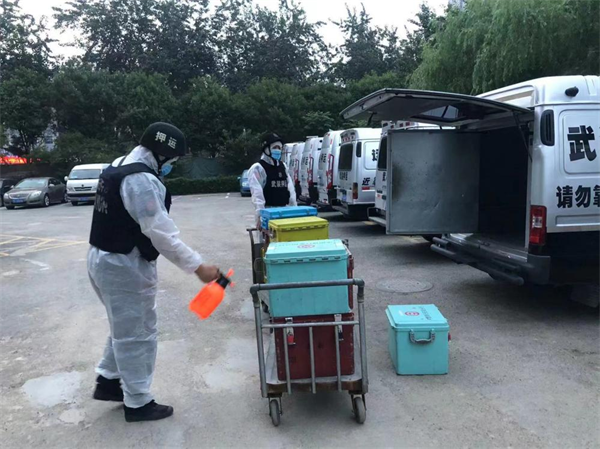 9月8日,大隊接銀行通知,因醫(yī)院提供現(xiàn)金支持需從人行取款。防疫備勤車組立即全副武裝,投入緊張的押運工作中。時值中秋前夕,白天氣溫仍徘徊在三十度左右。每天近八個小時的押運任務(wù),讓穿著密不透氣的連體防護服的隊員們衣服被汗水浸透,皮膚被泡的發(fā)白,脫去防護服時就像洗了澡一樣。但同志們沒有喊一聲苦、叫一聲累,安全順利地完成押運任務(wù),以實際行動體現(xiàn)了守押隊員在防疫、抗疫中不平凡的堅守,得到了客戶的高度贊揚。