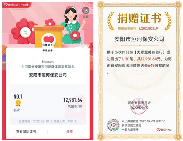 涓涓細流匯江海,點滴善舉鑄大愛。伴隨著一份份珍貴的愛心在微信群刷屏,洹河保安公司職工在活動期間參與人數(shù)達1181人次,共籌得愛心捐款12981.64元,以實際行動發(fā)揮國有企業(yè)的示范引領作用,為慈善事業(yè)發(fā)展貢獻力量。