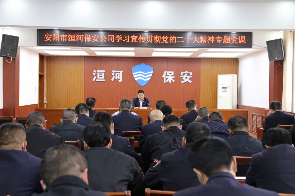 他最后講到,新思想引領(lǐng)新時代,新時代開啟新征程。我們每一位洹河保安公司的黨員干部,務(wù)必要把學(xué)習(xí)貫徹黨的二十大精神作為重中之重,深入細(xì)致領(lǐng)會黨的二十大報(bào)告的基本內(nèi)容和精神實(shí)質(zhì),堅(jiān)定捍衛(wèi)“兩個確立”、堅(jiān)決做到“兩個維護(hù)”,迅速把思想和行動統(tǒng)一到黨的二十大精神上來,一步一個腳印把黨的二十大作出的重大決策部署付諸行動、見之于成效,勇?lián)S護(hù)社會穩(wěn)定的重任,在新的趕考之路上交出洹河保安人新的優(yōu)異答卷。