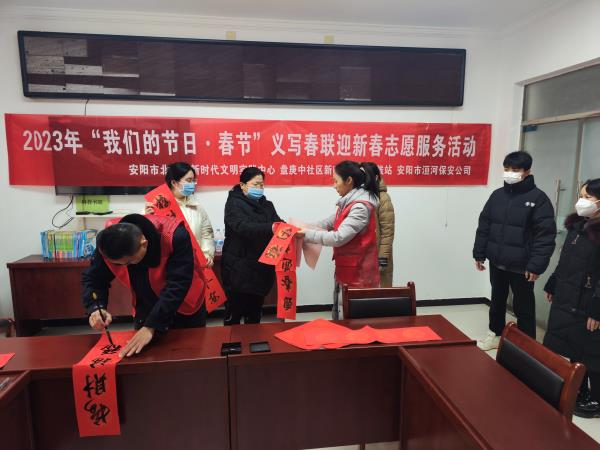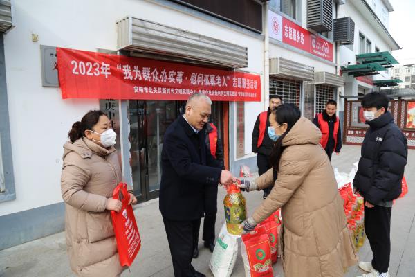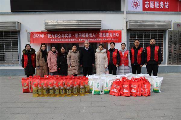 為進(jìn)一步了解基層群眾的需求,切實(shí)解決他們在生活中的實(shí)際問題,讓他們度過一個(gè)溫暖、祥和、快樂的新春佳節(jié)。1月17日下午,公司總經(jīng)理魏東帶領(lǐng)志愿者帶著米、面、油、春聯(lián)等深入盤庚中社區(qū)開展了“義寫春聯(lián)迎新春”暨“我為群眾辦實(shí)事慰問孤寡老人”志愿服務(wù)活動(dòng)。