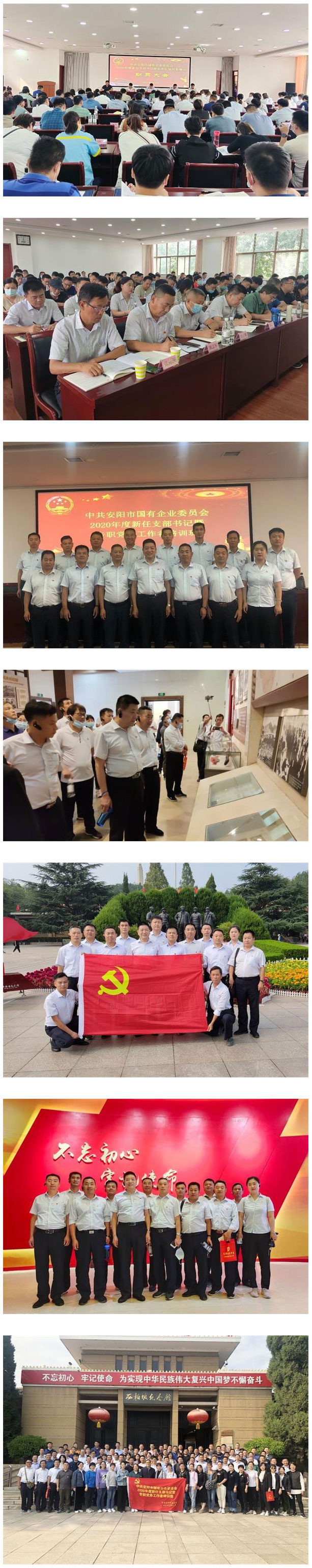 2020年 9月21日至24日,受黨委書記王高峰同志委托,黨委副書記張錫軍同志帶隊(duì),組織公司黨支部書記、黨務(wù)工作人員共15人,參加了由中共安陽市國(guó)有企業(yè)委員會(huì)舉辦的2020年度新任書記暨專職黨務(wù)工作者培訓(xùn)班,培訓(xùn)班為期4天。