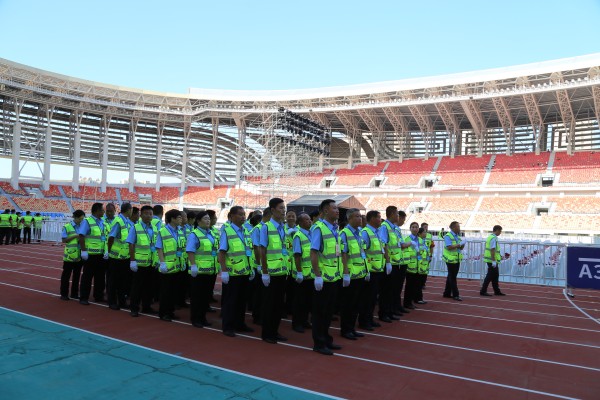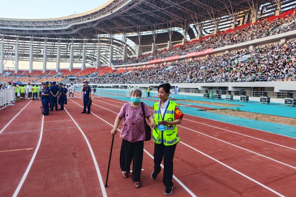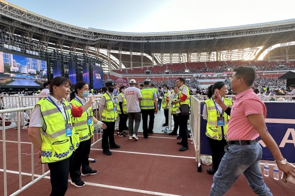 全體執(zhí)勤人員克服活動時間長、天氣炎熱等困難,提前4小時到崗到位,自始至終服從命令、聽從指揮,堅守崗位,認(rèn)真履責(zé), 既維護現(xiàn)場秩序,又服務(wù)群眾。在酷暑之下,全體安保人員頭頂烈日的“拷問”,腳踏熱浪的“侵襲”,堅守在體育場內(nèi)的每個執(zhí)勤點。