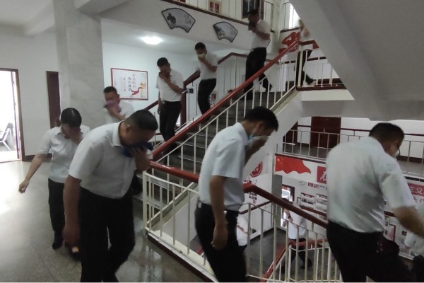 隨著急促的警報(bào)聲響起,消防演練拉開序幕。所有職工有序開展逃生活動(dòng),用濕毛巾捂住口鼻,低頭彎腰,按路線向應(yīng)急疏散口疏散。全體職工在一分多鐘內(nèi)迅速撤離至安全區(qū)域。