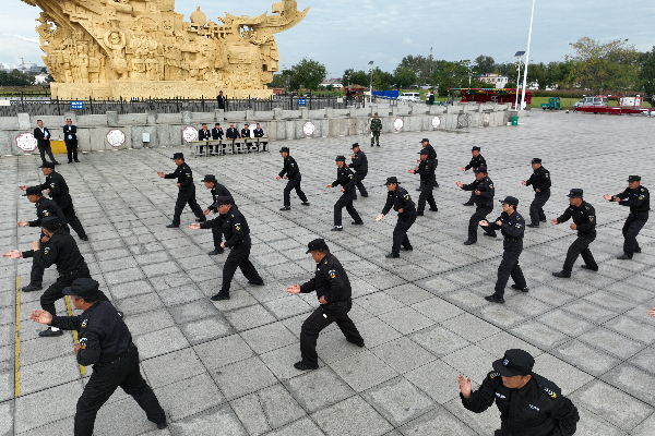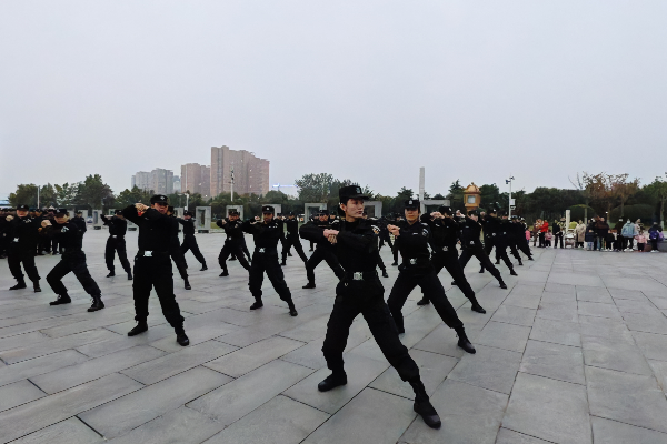 此次考核內(nèi)容為理論考試和實操技能考核。實操考核設(shè)置“隊列動作”“擒敵拳”“交通指揮”“鋼叉操”“匕首操”“校園保安勤務(wù)處置預(yù)案”“金融防搶預(yù)案”“車輛爆胎應(yīng)急預(yù)案”“槍支拆裝”九個項目。