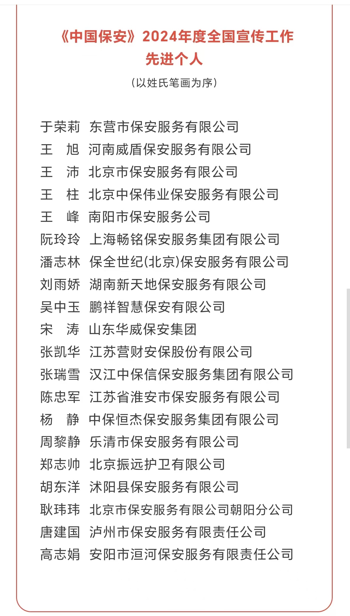 3月5日,《中國(guó)保安》雜志2024年度全國(guó)宣傳工作優(yōu)秀組織獎(jiǎng)、優(yōu)秀撰稿人、先進(jìn)集體、先進(jìn)個(gè)人評(píng)選揭曉,公司綜合辦公室高志娟同志喜獲“全國(guó)宣傳工作先進(jìn)個(gè)人”榮譽(yù)。