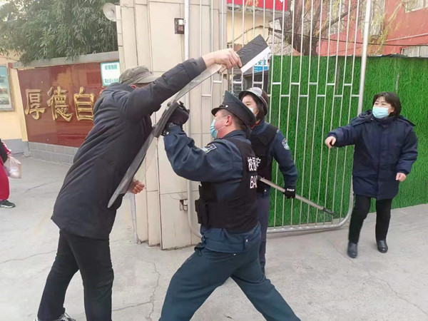 分公司對各大隊(duì)預(yù)案演練工作迅速安排部署,人防一大隊(duì)在熱電廠,人防二大隊(duì)在安陽橋小學(xué),人防三大隊(duì)在湯陰幼師,四大隊(duì)在銀杏小學(xué)、彰武小學(xué)等組織演練紅黃碼和暴力事件預(yù)案。演練中參加人員認(rèn)真,細(xì)致,謹(jǐn)慎、規(guī)范操作每個細(xì)節(jié)。四大隊(duì)龍安校園保安由學(xué)校師生共同參與,通過演練增長了隊(duì)員的認(rèn)知力,為學(xué)校疫情防控筑牢了一道保障。各大隊(duì)以班為單位利用周六,日休息時(shí)間,組織訓(xùn)練鋼叉操、盾牌操、擒敵拳等科目,增強(qiáng)實(shí)戰(zhàn)能力。