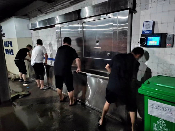 當(dāng)晚,他們對地下室以及金庫門前實(shí)施防汛措施,隨著水位逐漸升高,隊(duì)員們各自就位提高警惕,按照預(yù)案要求,全力以赴保障金庫和內(nèi)部安全。
