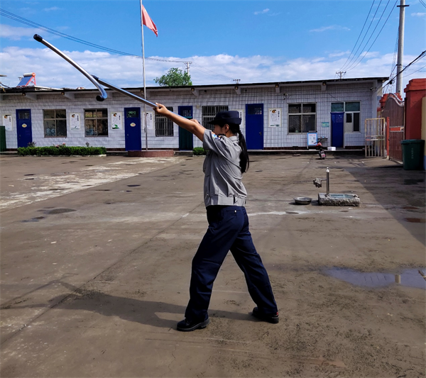 校園保安是維護校園安全的一道重要防線,也是家長和孩子們溫暖的依靠。人防三大隊都里鎮(zhèn)李珍班隊員全部是女子隊員,為克服新上崗女隊員心理上的畏難情緒,都里鎮(zhèn)保安隊李珍班制作了訓練慢視頻,共同學習,一起進步!同時,大家相互打氣、鼓勵,切磋技藝。在訓練過程中,隊員們按照鋼叉操動作逐項進行規(guī)范,把鋼叉操的要領(lǐng)牢記在心。