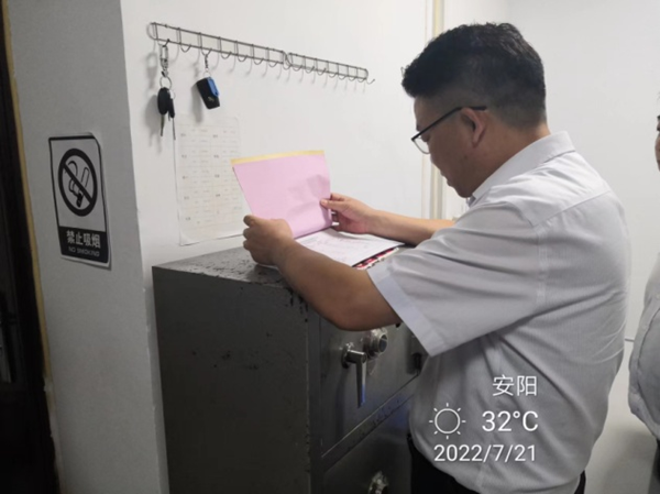 分公司領(lǐng)導(dǎo)張新平、韋洪東分別深入到七大隊(duì)的臨淇、建行、農(nóng)商行等中隊(duì)進(jìn)行了工作檢查,在檢查中,他們統(tǒng)一檢查了各中隊(duì)的日常臺(tái)賬、車輛、守庫(kù)室等,詳細(xì)查看了隊(duì)員的學(xué)習(xí)記錄,查看了今年公司“以案促改、鄭州7.20災(zāi)害追責(zé)和能力作風(fēng)建設(shè)年”等方案的開展和轉(zhuǎn)段學(xué)習(xí)情況,檢查了防疫情況登記。在守庫(kù)室,不但查看了守庫(kù)室的各項(xiàng)設(shè)備及衛(wèi)生情況,還查看了押運(yùn)登記本和槍支領(lǐng)取交接本的登記情況。張新平指出,對(duì)比上一次的例行檢查,整體工作有了很大的改觀,好的方面要保持下去,對(duì)于檢查出的短板,要盡快的整改,確保守押各項(xiàng)工作安全運(yùn)行。
