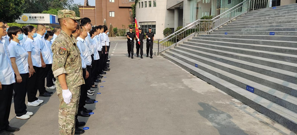 8時(shí)30分,升旗儀式正式開(kāi)始。升旗手就位,隨著雄壯的國(guó)歌響起,全體員工向國(guó)旗行注目禮,五星紅旗在國(guó)歌聲中冉冉升起、迎風(fēng)飄揚(yáng)。為做好這次升旗儀式,守押五大隊(duì)大隊(duì)長(zhǎng)牛曉波認(rèn)真挑選升旗手,對(duì)選定人員進(jìn)行了針對(duì)性訓(xùn)練。本次升旗儀式,不僅體現(xiàn)了守押五大隊(duì)與貴行的團(tuán)結(jié)協(xié)作能力,更是展現(xiàn)了守押五大隊(duì)昂揚(yáng)向上的精神風(fēng)貌。自本月起,每月一號(hào)為升旗日。