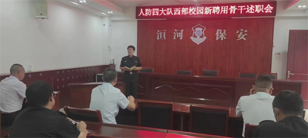 9月3日上午,人防四大隊(duì)西部校園新聘用骨干述職會(huì)在公司南二樓會(huì)議室召開(kāi),人防四大隊(duì)大隊(duì)長(zhǎng)陳志軍、副大隊(duì)長(zhǎng)李領(lǐng)軍參加述職活動(dòng)并擔(dān)任評(píng)委,西部校園12名代理班長(zhǎng)進(jìn)行述職匯報(bào)。