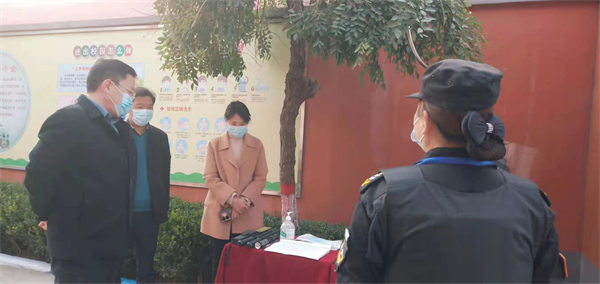 檢查中,保安員嚴格落實疫情防控規(guī)定,認真查看督導組人員場所碼、核酸證明碼、健康碼,并進行消毒測溫登記。教育局劉局長對保安人員是否持證上崗和保安八件套進行了細致詢問。
