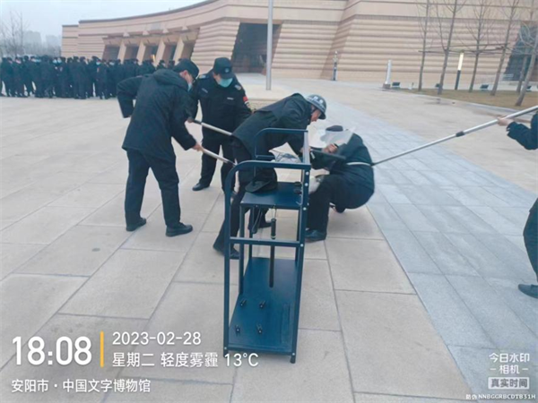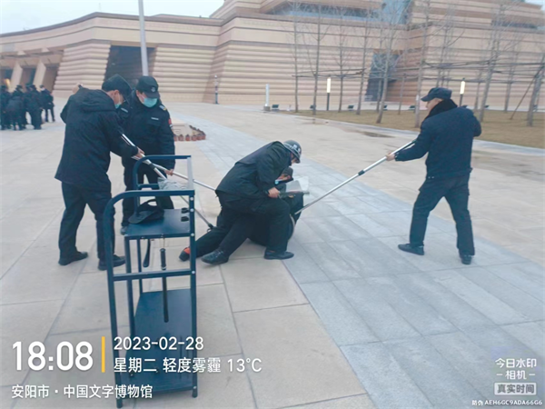 為增強(qiáng)特保隊員的反恐安全意識,提高對暴恐突發(fā)事件的應(yīng)變和處置能力,2月28日,特保大隊駐中國文字博物館中隊組織開展了反恐防暴應(yīng)急演練活動。