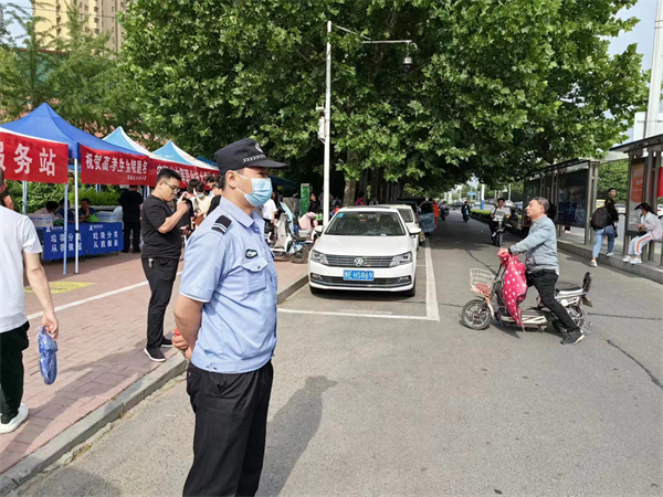 為做好此次安全保障工作,特保大隊高新巡防隊對考點周圍環(huán)境、考場安全、應(yīng)急預(yù)案、應(yīng)急處突和安保措施落實工作進(jìn)行了詳細(xì)了解??荚嚻陂g,實地檢查部署考點的便民服務(wù)、綠色通道及考點周邊秩序狀況,并預(yù)留應(yīng)急車輛,確保一旦發(fā)生特殊狀況,能夠第一時間進(jìn)行有效處置。同時,在考點周圍設(shè)置臨時的道路管制,放置標(biāo)識標(biāo)牌提醒周圍車輛緩速慢行、禁止鳴笛,為廣大考生營造安靜的考試環(huán)境。
