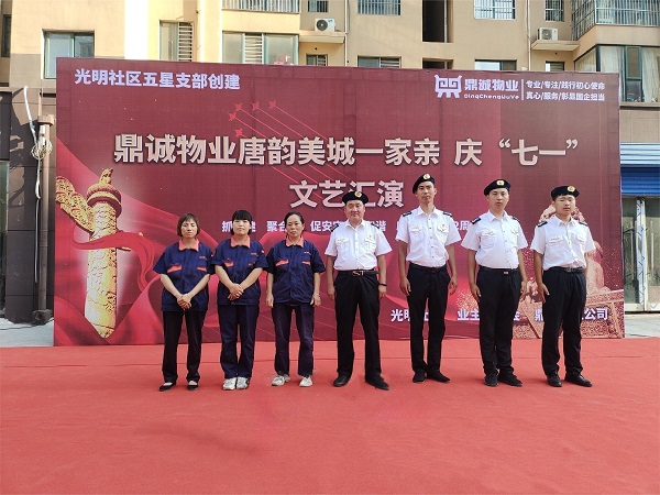 為熱烈慶祝建黨102周年,傳承紅色基因、提升紅色物業(yè)帶給業(yè)主的幸福感,在“七一”即將來臨之際,鼎誠公司聯(lián)合街道社區(qū)以及部分業(yè)主,在唐韻美城小區(qū)開展了“紅色文藝匯演”活動,表達(dá)對黨的熱愛和崇敬之情。