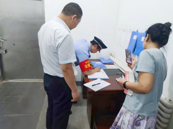 9月27日,北辰分局社區(qū)治安民警趙鵬霞到守押六大隊檢查槍彈安全工作。大隊長殷成軍陪同檢查,中隊長袁鵬超現(xiàn)場匯報。