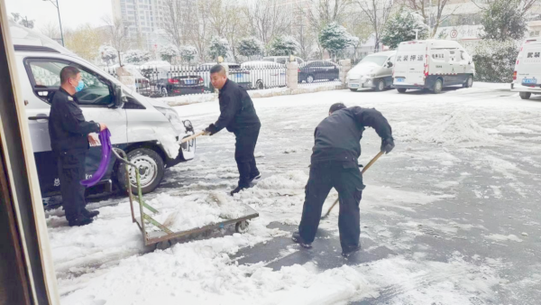 大家不畏嚴寒,拿起鐵鍬、掃帚、鏟子等工具在車庫大院和車輛進出口進行清掃。經(jīng)過大家的相互配合、共同努力,大院變得干凈通暢,不僅為押運車輛安全出行提供了保障,同時,也體現(xiàn)了守押五大隊團結(jié)協(xié)作、積極向上的精神風(fēng)貌。