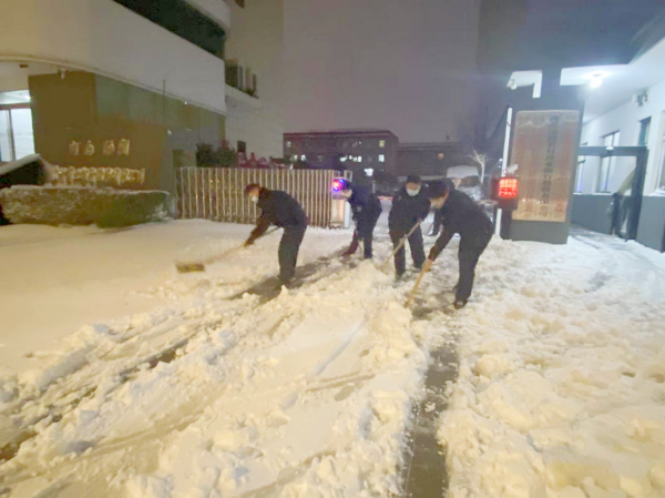 隊員們聞訊而動,克服路上積雪嚴重、路滑等困難,提前半個小時到達單位,進行出車前的準備工作。隊員們密切配合、分工合作,有的配合司機給押運車輛安裝防滑鏈,有的拿起鐵鍬,鏟除積雪,清理駐地路面,確保正常出車。