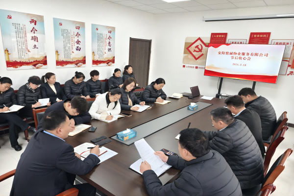 會上,經(jīng)理楊建芳要求,一是要快速啟動各項工作。迅速調(diào)整狀態(tài),精神上振奮、思想上警醒、工作上緊張,全力以赴抓好今年的重點(diǎn)工作。二是要善于統(tǒng)籌協(xié)調(diào)各項工作。突出工作重點(diǎn),工作部署是關(guān)鍵,要提前規(guī)劃、早做準(zhǔn)備,確保工作任務(wù)清晰、有效推進(jìn)。三是各項目要全面推行網(wǎng)格管家服務(wù)體系,以“網(wǎng)格化+管家式”的精細(xì)化管理服務(wù)體系為抓手,不斷夯實公司管理的基層基礎(chǔ),掌握業(yè)戶管理的主動權(quán),拓寬營收賽道。