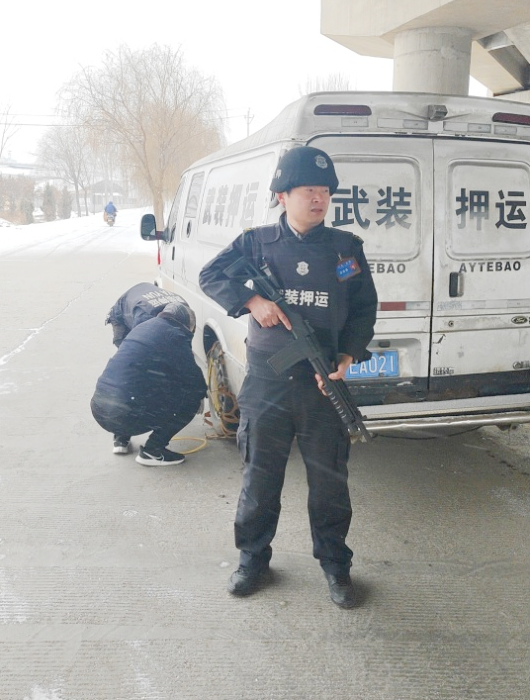 橫水線路、任村線路押運(yùn)車輛均在行駛中,立即根據(jù)路況加裝了車輛防滑鏈。東姚線路押運(yùn)車輛在行駛至洪河網(wǎng)點(diǎn)時,由于雪越下越大,導(dǎo)致進(jìn)入洪河村時積雪深度較厚,車長李玉浩立即下車進(jìn)行勘察,發(fā)現(xiàn)鄉(xiāng)村小道不但積雪較厚,還多有坑洼狹窄的路段,雖然安裝有防滑鏈,但對于車輛行駛有很大的安全隱患。經(jīng)過車長與司機(jī)、車組人員商議,并報副隊(duì)長管宇飛批準(zhǔn),決定采取徒步進(jìn)行接送洪河網(wǎng)點(diǎn)款箱,徒步接送路程大約有3公里左右。為確保安全,司機(jī)將車輛停靠村口最近位置,并留守一名押運(yùn)員值守,車長隨調(diào)款員前去接送款箱,經(jīng)過一段時間的徒步行進(jìn),將款箱安全裝車,并于晚上8時左右,東姚線路車輛安全返回駐地,安全的完成了押運(yùn)工作任務(wù)。