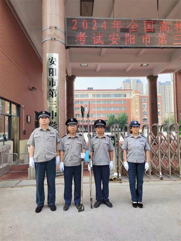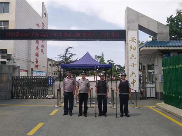 考試期間,全體執(zhí)勤隊(duì)員牢固樹立全心全意為考生服務(wù)的思想,時(shí)時(shí)處處把安全意識(shí)、安全責(zé)任放在首位,為考生營(yíng)造安全、和諧的考試環(huán)境。早上6點(diǎn)半,護(hù)考保安隊(duì)員準(zhǔn)時(shí)到崗在位,嚴(yán)格按照公司“定人、定崗、定時(shí)、定責(zé)”要求,警容嚴(yán)整,嚴(yán)陣以待,配合校方在學(xué)校門口設(shè)置警戒區(qū)域,避免無關(guān)人員靠近,做好校門口交通保障、門衛(wèi)守護(hù)、入場(chǎng)指導(dǎo)、警戒維護(hù)等……他們各司其職、認(rèn)真負(fù)責(zé)。執(zhí)勤中,涌現(xiàn)了許多好人好事,如:駐四中考點(diǎn)、一中考點(diǎn)護(hù)送輪椅上行走不便學(xué)生的保安隊(duì)員陳文斌、王鳳銀,駐三十二中考點(diǎn)撿到汽車鑰匙和家中鑰匙的隊(duì)員牛新玉等。盡管汗水打濕了衣服,但他們依然頂著酷暑堅(jiān)守在各自的崗位上,為莘莘學(xué)子保駕護(hù)航,良好的精神風(fēng)貌贏得了考生和家長(zhǎng)的一致好評(píng)。