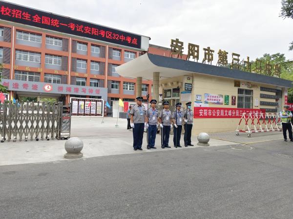 場(chǎng)內(nèi)考生奮筆疾書,場(chǎng)外保安堅(jiān)守崗位,兩份不同的答卷,同樣需要認(rèn)真負(fù)責(zé)、盡心盡力,考生一舉中魁不負(fù)青春年華,保安隊(duì)員在大“烤”中用安保行動(dòng)書寫平安答卷。