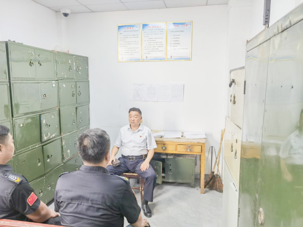 會(huì)后,大隊(duì)長(zhǎng)段俊杰檢查了押運(yùn)車(chē)輛的維保、衛(wèi)生和滅火器情況,辦公室、更衣室的消防器材和用電情況以及大隊(duì)臺(tái)賬登記;副隊(duì)長(zhǎng)張博對(duì)大隊(duì)槍支彈藥進(jìn)行了安全檢查,確保槍支彈藥狀態(tài)良好。