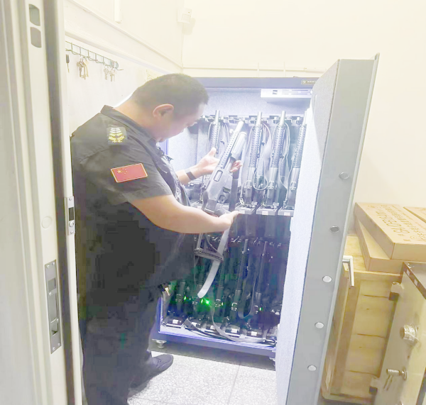 為進(jìn)一步加強(qiáng)槍支管理,預(yù)防槍支安全事故的發(fā)生,8月30日,守押十一大隊(duì)大隊(duì)長(zhǎng)王勇帶領(lǐng)中隊(duì)長(zhǎng)李明、張亮對(duì)槍庫(kù)的槍支彈藥進(jìn)行全面細(xì)致的檢查。