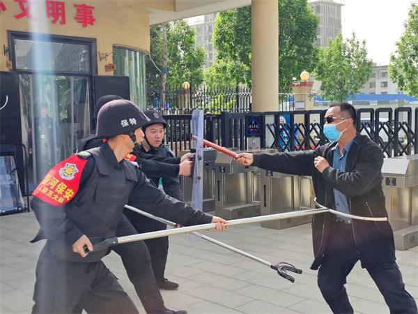 此次演練以“實(shí)戰(zhàn)化、精準(zhǔn)化”為導(dǎo)向,聚焦保安崗位核心職責(zé),全面檢驗(yàn)保安隊(duì)伍的快速反應(yīng)能力與協(xié)同作戰(zhàn)水平。上午9時(shí),演練正式開始。一名 “暴恐分子”趁幼兒園大門關(guān)門之機(jī),突然從衣袖中抽出“管制刀具”,試圖強(qiáng)行闖入園區(qū)。門崗保安立即識(shí)破異常,迅速按下一鍵報(bào)警裝置,同時(shí)通過對(duì)講機(jī)向園內(nèi)廣播:“有危險(xiǎn),立即啟動(dòng)防暴預(yù)案!”