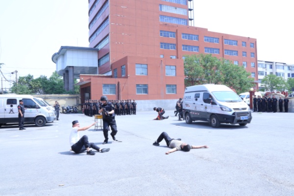 此次練兵考核項目主要包括隊列、交通指揮、文明禮儀崗、理論測試、守押防搶劫預案與輪胎更換、人防校園防暴預案及銀行應急預案、消防知識問答與實際操作等科目??己诉^程中,人防分公司全體隊員精神飽滿、隊列整齊、紀律嚴明;特保大隊參訓率較高、科目完整、士氣振奮;守押分公司各大隊基礎科目扎實沉穩(wěn)、精湛成熟、指揮標準、動作規(guī)范,尤其是創(chuàng)新科目刺殺操動作剛勁、氣勢雄渾,讓人耳目一新。