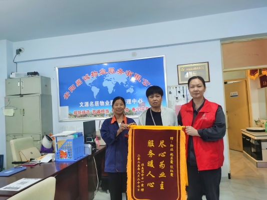 接到求助后,保潔人員詳細記錄了衣物的特征、晾曬時間及發(fā)現(xiàn)丟失的時間,并第一時間在可能掉落的區(qū)域展開細致查找。經過多方努力,最終在10號樓南側的綠化帶中找到了業(yè)主丟失的衣物,并及時歸還。業(yè)主對物業(yè)高效、負責的工作態(tài)度表示高度認可,特意制作了一面寫有“盡心為業(yè)主 服務暖人心”的錦旗贈予物業(yè)服務中心,以表達誠摯感謝。