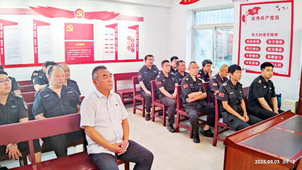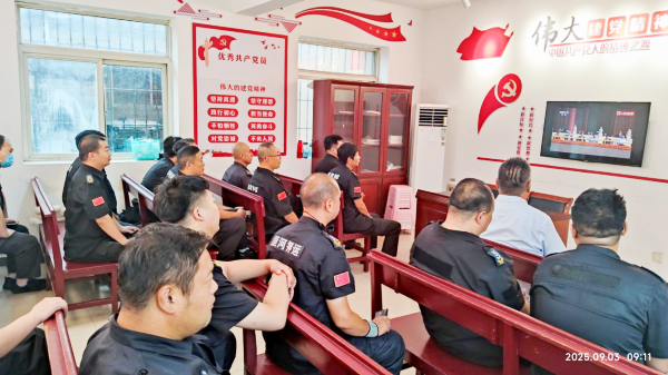 為慶??箲?zhàn)勝利80周年,9月3日上午,守押一大隊(duì)精心組織全體隊(duì)員集中觀看閱兵直播。