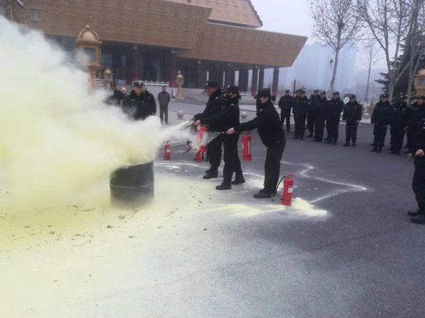 為確??蛻魡挝簧?、財(cái)產(chǎn)安全,保障春節(jié)期間安全無事故,特保大隊(duì)派駐中國文字博物館中隊(duì)按照客戶春節(jié)前消防防控要求,結(jié)合公司《關(guān)于開展安全生產(chǎn)大檢查大排查的通知》,每日不同班次相繼進(jìn)行消防訓(xùn)練。