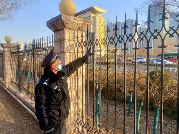 牛年春節(jié)臨近,為度過一個安寧祥和的新春佳節(jié),人防二大隊提前安排布局,做了周密的準(zhǔn)備工作。近一周來,該大隊主管隊伍管理和崗點建設(shè)的干部,深入基層崗點查崗查哨,了解隊伍思想動態(tài),就進行節(jié)前安全隱患大排查提出具體要求,叮囑隊員站在講政治的高度,堅守崗位,認真履行職責(zé),把各項安全措施落到實處。守土有責(zé),守土盡責(zé),嚴(yán)格執(zhí)行門衛(wèi)管理制度,搞好消毒滅殺,講究個人衛(wèi)生,切實做好疫情防控工作,確保不發(fā)生任何安全責(zé)任事故和疫情防控失職行為。圖為隊員在進行安全隱患排查。