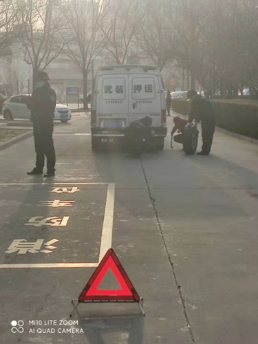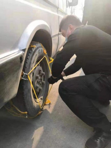 演練科目包括,押運(yùn)車行駛在途中輪胎突然爆胎更換輪胎、下雪天運(yùn)鈔車換防滑鏈和運(yùn)鈔車發(fā)生火災(zāi)。演練中,各車組成員按照自己崗位角色和職責(zé)分工,演示突發(fā)事件中押運(yùn)員警戒站位、交接員轉(zhuǎn)移款箱、駕駛員更換輪胎、給輪胎安裝防滑鏈、滅火等。按照預(yù)案,參演人員都能做到忙而不亂,有序進(jìn)行。