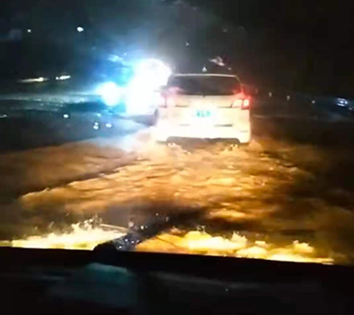 晚6點,突接中原銀行湯陰亞新ATM機,被淹告急,為了挽救人民財產,中原銀行隊員方志林、白亮、魏鑫冒著風險驅車前往,任務就是為了把淹沒在洪水中ATM里面的錢拉回來。前往的路上,無路可走,到處汪洋,司機白亮克服困難,涉水而行,晚上8點,趕到湯陰,走至湯陰火車站附近往南處的時候,路截斷了,水深到胸部,但距離ATM還有兩公里的路程,為了完成任務,為了挽救人民財產,請示領導后,決定涉水走路前進。方志林、魏鑫舉著槍和銀行人員手拉手冒著雨倘著水艱難的走到了ATM點,往返四公里,用將近兩個小時的時間完成了任務。因為雨天路上情況變化太大,為了給在湯陰的車探明路況,晚上九點,大隊長李艷軍和劉靜雨開車前往湯陰,尋找可行路線,歷經重重困難,于10點左右兩車匯合,由于提前探明路況,返程時沒有遇到很大困難,返回到中原銀行時,是晚上11點半左右。