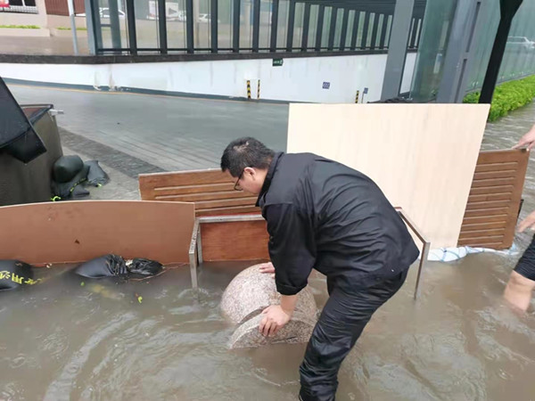 負(fù)一層這時(shí)候水已經(jīng)淹到了膝蓋處;由于配電室被淹導(dǎo)致停電,李艷軍大隊(duì)長(zhǎng)馬上摸黑帶領(lǐng)隊(duì)員裝沙袋,找擋板,蹚著近腰高的深水堵截洪水。背沙袋、拖沙袋、拉沙袋,隊(duì)員們一路小跑,不管用什么辦法,爭(zhēng)分奪秒,搶險(xiǎn)第一,戰(zhàn)勝洪水。