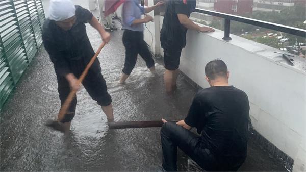 凌晨三點,看到雨越下越大,人防一大隊駐浦發(fā)銀行安陽分行崗立刻啟動應急響應,巡查銀行各樓層安全。當查到四樓時,發(fā)現(xiàn)電井有漏水,而且有越漏越大的趨勢,考慮到電井里全行的電源如果出現(xiàn)故障,整個銀行將癱瘓,保安隊員果斷停掉全行電源。在銀行辦公室宋主任和張行長帶領下,全體隊員迅速沖向四樓房頂,由于雨下的太大,這時的屋頂水已經(jīng)沒過膝蓋。如果不及時處理,將造成重大損失。但手邊沒有工具,大家只能用錘和鎬將墻上打洞及時排水。在猛烈的暴雨中,大家掄大錘,用鎬敲,全體隊員和銀行工作人員共同努力,靠手工在四樓后墻挖出七、八個洞,終于解除了險情。