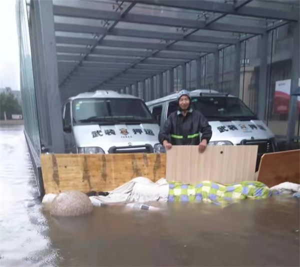 2021年 7月19日起,連日的強(qiáng)降雨天氣,使安陽市區(qū)一片澤國(guó),給人們的生活乃至生命財(cái)產(chǎn)安全帶來嚴(yán)重威脅。在暴風(fēng)雨面前,安陽市洹河保安公司人防四大隊(duì)駐中原銀行安陽分行保安員危急時(shí)刻不顧個(gè)人安危保衛(wèi)國(guó)家財(cái)產(chǎn)安全的保安使命。