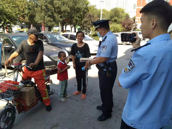 在平原路與燈塔路交叉口南100米雅迪電動(dòng)車門店門口,一位女士哭著喊說(shuō)找不到孩子了,引起許多路過(guò)群眾圍觀。此時(shí),人防一大隊(duì)駐文峰區(qū)專職巡防隊(duì)班長(zhǎng)楊科正在店里修車,見狀后立即上前仔細(xì)詢問(wèn)情況,隨后,用對(duì)講機(jī)通知附近巡邏隊(duì)員過(guò)來(lái)幫忙尋找,并撥打110尋求幫助。經(jīng)過(guò)巡防隊(duì)員和110民警一起尋找后,最終巡防隊(duì)員在路口附近找到了貪玩的孩子,家長(zhǎng)對(duì)巡防隊(duì)員熱心救助的行為表示非常感謝!