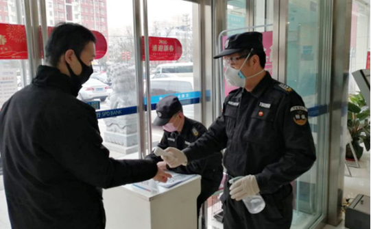 疫情期間,為防止病毒擴(kuò)散傳染,浦發(fā)銀行保安班保安員放棄節(jié)假日休息,滿員滿點(diǎn)上崗。隊(duì)員層層動員、壓實(shí)責(zé)任,將學(xué)習(xí)到的各種防控疫情知識落實(shí)到工作中,確保自身和客戶的安全。首先隊(duì)員做好自我保護(hù),按照要求,上崗戴口罩,手套。其次,他們堅(jiān)持對進(jìn)出銀行的每位員工,以及辦理業(yè)務(wù)的每位客戶量體溫、做登記、進(jìn)行個人消毒、詢問其是否去過疫區(qū)。