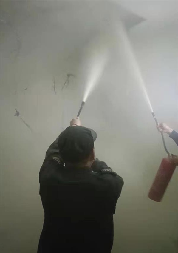 此時,有的老師打了119報警電話。隊員們和校長、老師齊上陣,經(jīng)過奮力撲救,火勢得到了控制。正當(dāng)他們剛要松口氣時,發(fā)現(xiàn)二樓還有火情,原來是火苗順著電線蔓延到了二樓泡沫簡易房。滅火器用完了,隊員們拉起消防栓進行滅火。等消防隊趕到時,基本已將明火消滅。