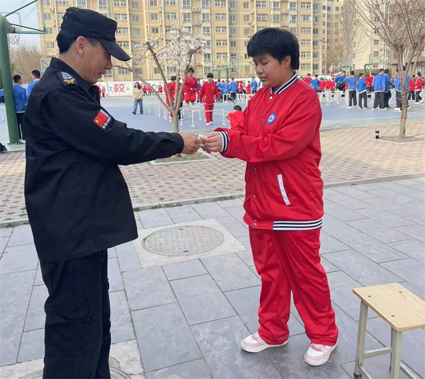 3月16日,市八中一名女學(xué)生來到學(xué)校門崗,將一紙感謝信送到人防三大隊(duì)派駐該校保安班中隊(duì)長(zhǎng)楊海順手中,感謝楊海順撿到她遺失的電話手表。