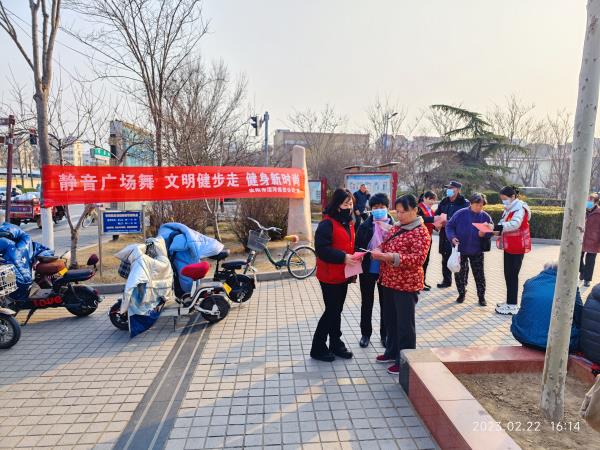 為倡導(dǎo)文明健康的生活方式,引導(dǎo)群眾培養(yǎng)文明行為習(xí)慣,促進全民健身運動文明、健康、有序發(fā)展,營造良好公共環(huán)境,2月22日下午,公司志愿者們來到平原橋法治文化廣場開展“靜音廣場舞 文明健步走 健身新時尚”宣傳志愿服務(wù)活動。