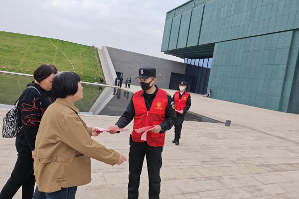 活動中,志愿者們身穿紅色馬甲,在景區(qū)入口處向來自各地的旅客熱情地介紹文字博物館的基本情況,為游客提供旅游咨詢、路線引導和便民服務。同時向過往群眾發(fā)放《文明出游倡議書》宣傳頁,積極宣傳文明旅游相關知識,號召大家在出游時,要樹立文明出游意識,注意自己的行為舉止,遵守文明行為規(guī)范,愛護公共設施,共同維護環(huán)境衛(wèi)生,不踩踏草坪、不亂扔垃圾。